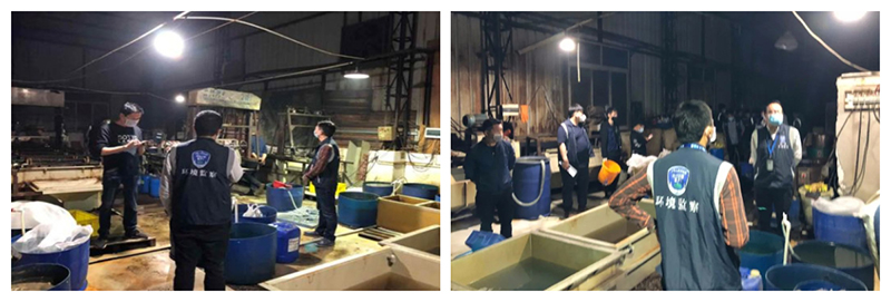 晚上七點三十分,橋頭分局局長陳偉超帶隊前往群眾舉報的工業園,與橋頭鎮公安部門和第三方檢測公司開展聯合突擊執法檢查。橋頭鎮朗廈村工業園內共有10幢鐵皮廠房,多數為空廠房。執法人員檢查時發現,工業園內存在一家無牌電鍍廠,車間內設有電鍍槽、滾筒、研磨機等生產設備,設備旁堆放著五金半成品,車間內沒有工作人員,現場亦未見生產。根據現場情況,經討論,執法人員決定暫時收隊。