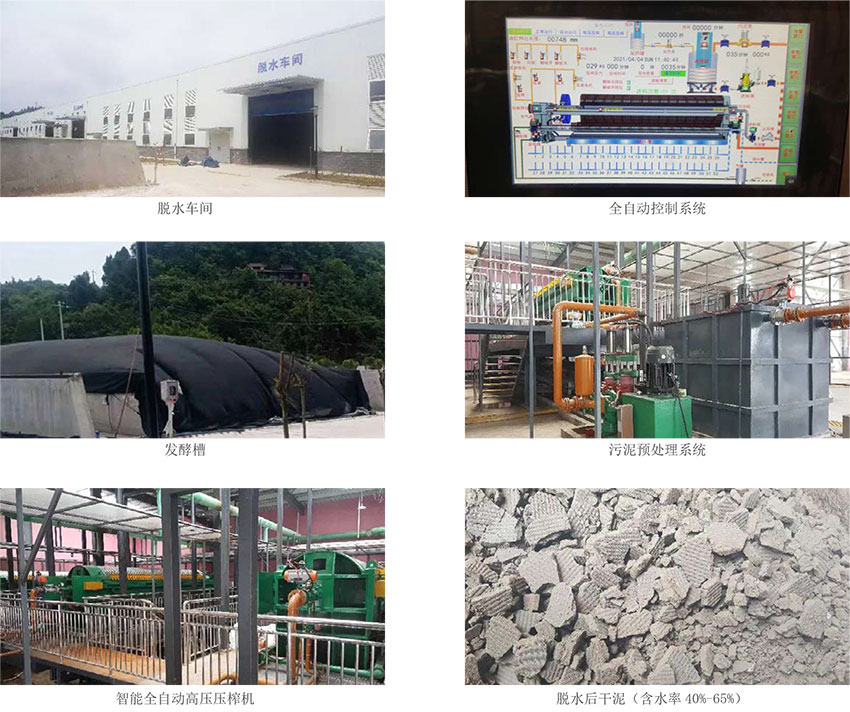 使污泥含水率降至 50% 以下,壓榨完成后自動進行氣動卸料;高壓氣體卸料同時徹底清洗濾膜,保證系統持久穩定運行。